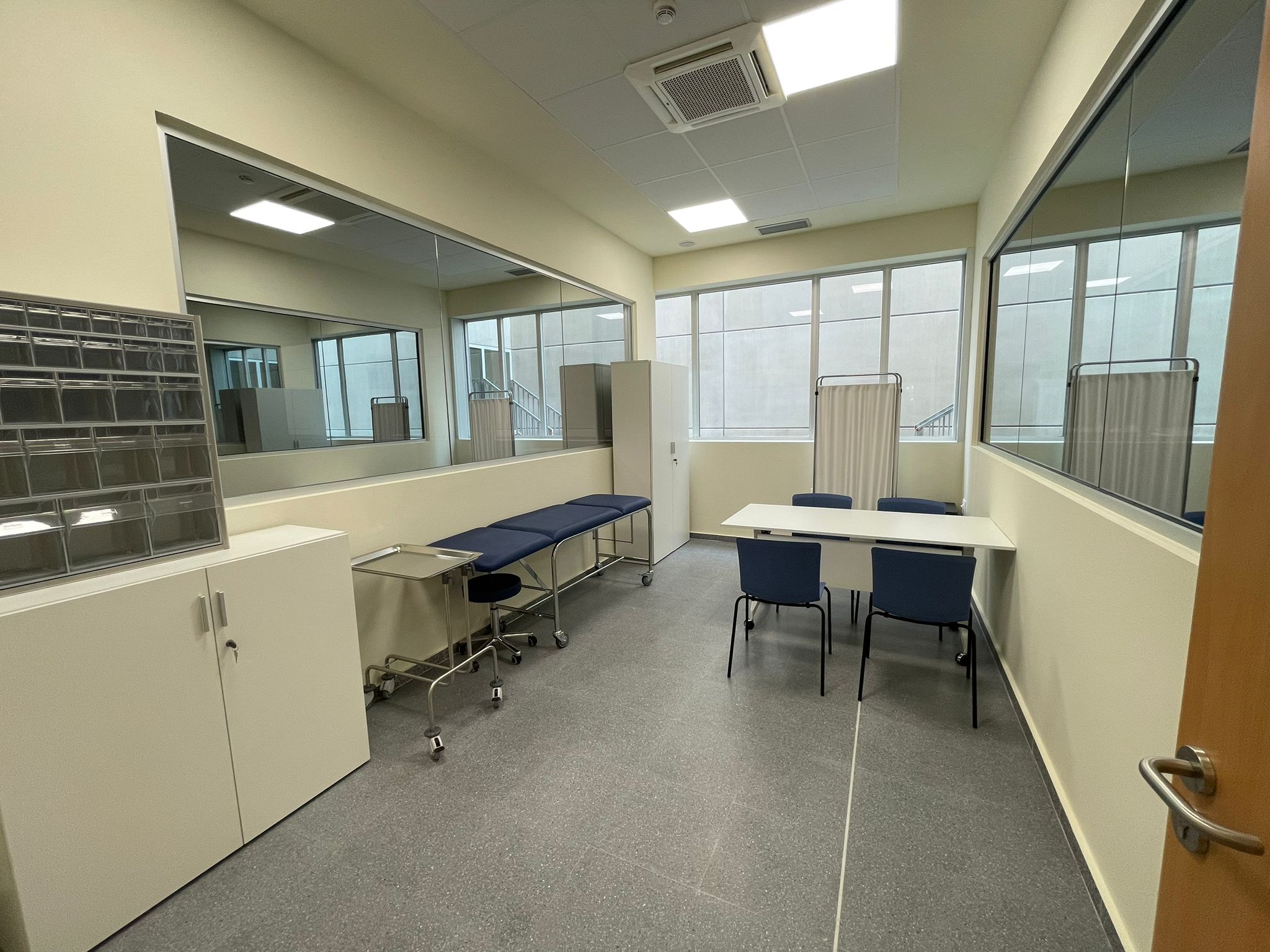 Dos estancias ambientadas como habitaciones de hospital, equipadas con simuladores de alta, media o baja fidelidad, así como con los accesorios y equipos necesarios para recrear escenarios clínicos realistas. Preparadas para realizar todo tipo de simulaciones avanzadas de zona 2. Ambas salas de hospitalización cuentan con una sala de control anexa (Sala de Control 2) con visión directa y dos salas de debriefing contiguas (Debriefing 4 y Debriefing 5) preparadas para 25 personas cada una.