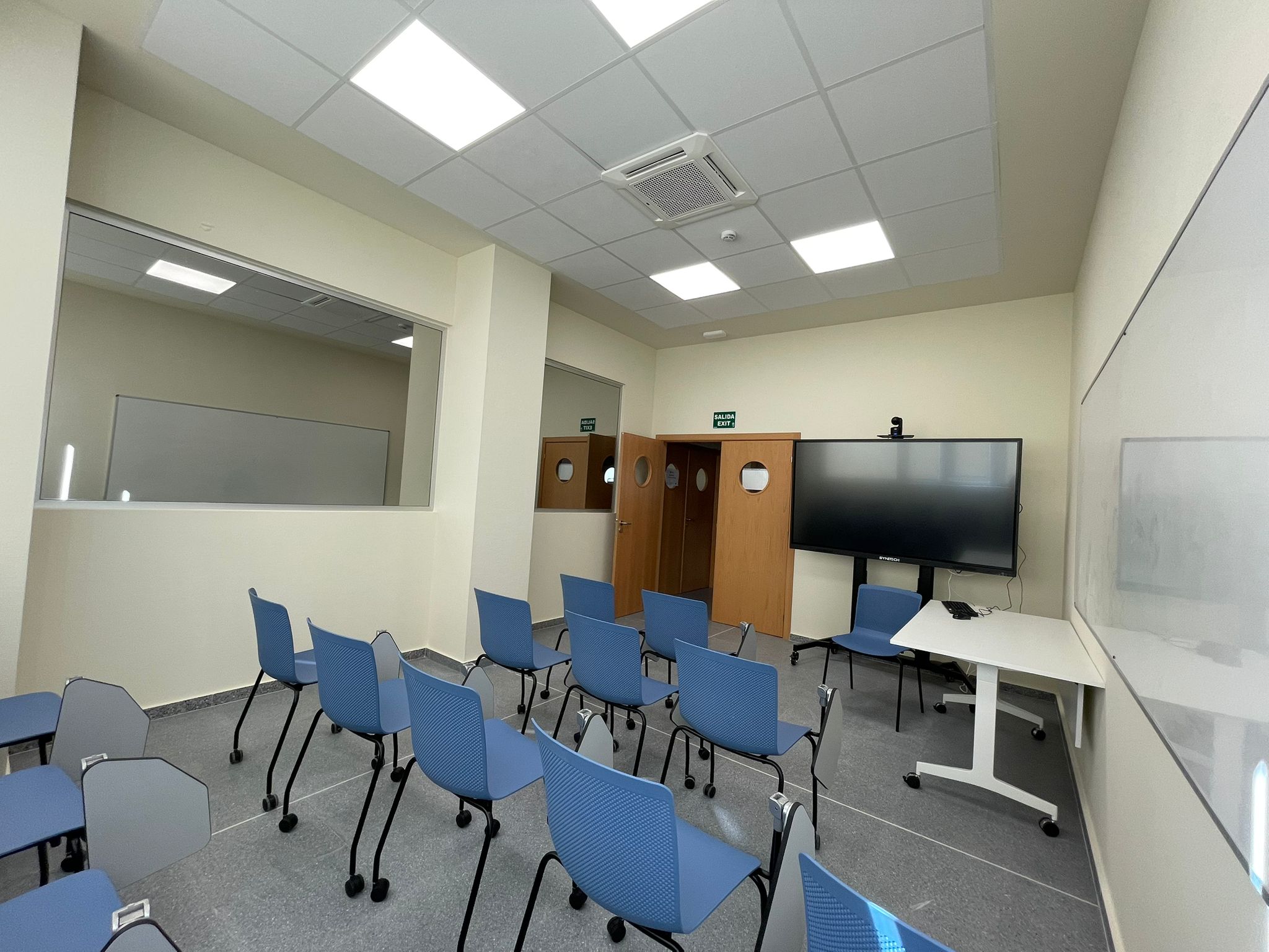 Espacios versátiles  y adaptables que pueden ser utilizados para una variedad de actividades, incluyendo talleres de habilidades, seminarios, clases teóricas y sesiones de debriefing. Cada sala polivalente tiene una pantalla interactiva con pc para proyección audiovisual.