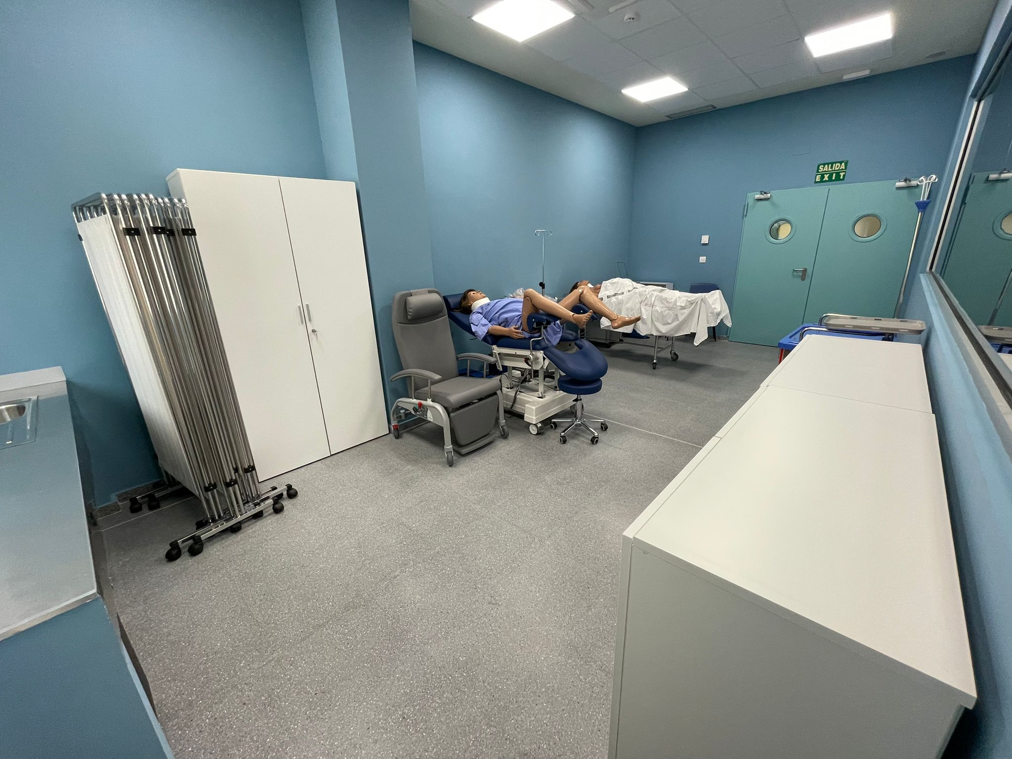 Formada por un área quirúrgica (prequirófano) de 20m² y un quirófano de 46m² para trabajar diferentes escenarios de simulación complejos sobre pacientes en estado crítico u hospitalizados. Equipadas con simuladores de alta fidelidad y equipos de soporte vital avanzado, estas estancias disponen también de un sistema audiovisual de captación y grabación. Esta sala pertenece y está gestionada por el Centro Experimental Cyborg.